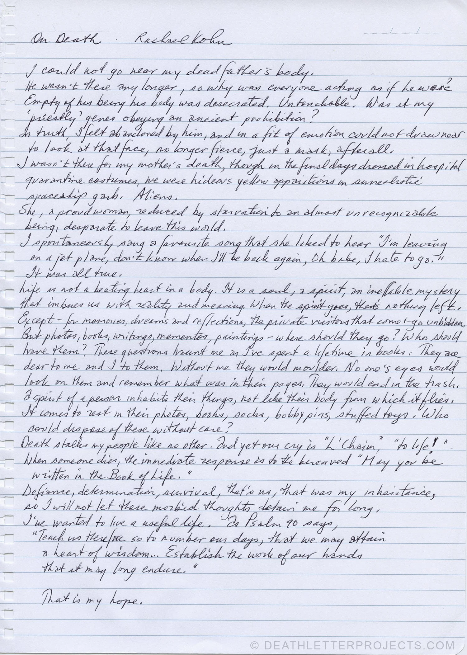 Empty of his being, his body was desecrated. Untouchable. Was it my ‘priestly’ genes obeying an ancient prohibition?