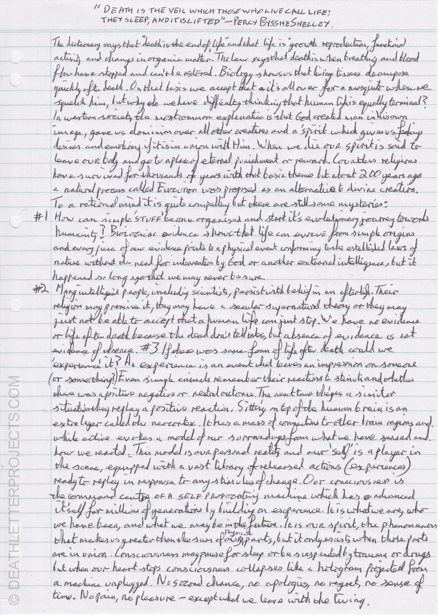 “Death is the veil which those who live call life: They sleep, and it is lifted.” - Percy Bysshe Shelley.